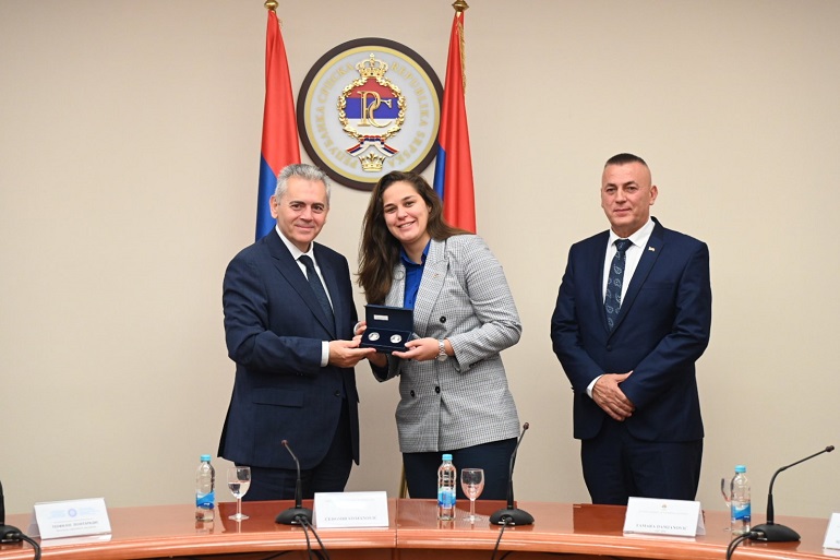 У знак захвалности зa допринос међупaрлaмeнтарној сарадњи, потпредсједник Ранкић уручио је Бурасу и Каракопулосу поклоне - Плакету Народне скупштине Републике Српске и икону Светог Платона бањалучког.
