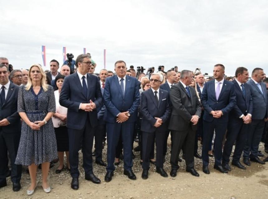„Срећна са што смо данас окупљени овим важним и великим послом. Данас, када славимо Дан српског јединства, слободе и националне заставе, окупили смо се да обиљежимо почетак изградње ауто-пута који ће спојити Бијељину и Рачу, Семберију и Срем, Српску и Србију“, рекла је Цвијановићева, поручивши да су односи Српске и Србије најбољи до сада.