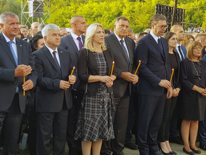 Предсједник Србије Александар Вучић је изразио задовољство што су представници Срба из Словеније и Македоније дошли да одају помен страдалима.
