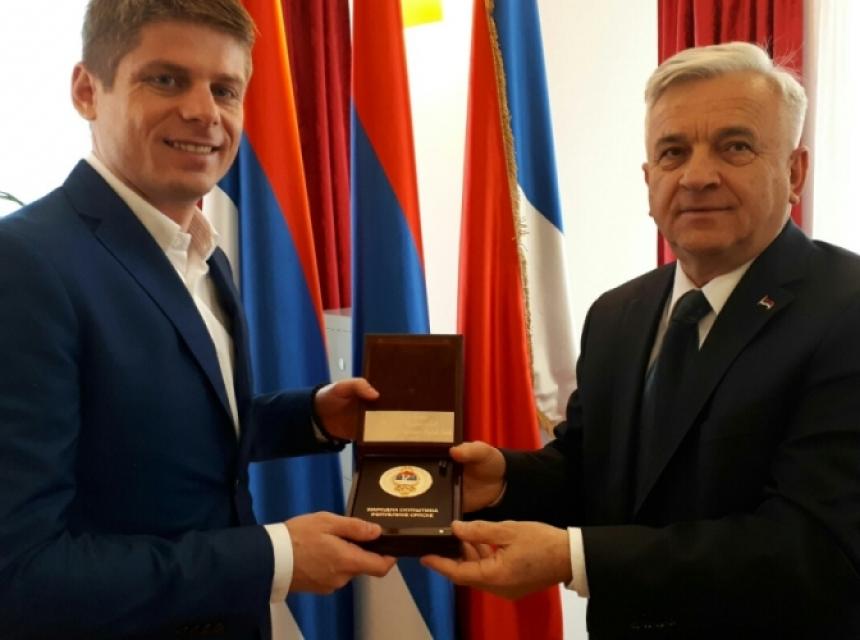 Предсједник Чубриловић уручио је Плакету Народне скупштине Републике Српске француском хуманисти Арноу Гујону за његов несебичан рад и допринос афирмацији истине.