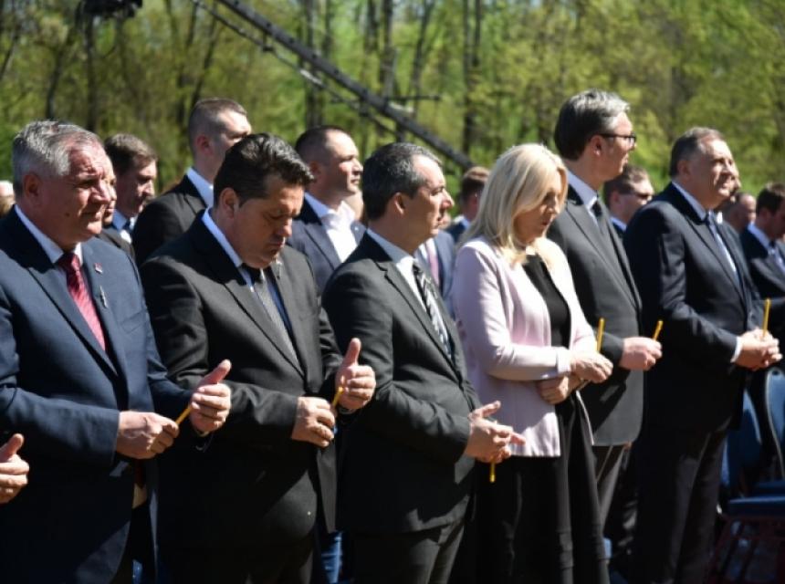 Вијенац је положио и предсједник Србије Александар Вучић, а са њим у пратњи били су предсједник Скупштине Србије Владимир Орлић, министар финансија Синиша Мали и министар за рад, запошљавање, борачка и социјална питања Србије Никола Селаковић.