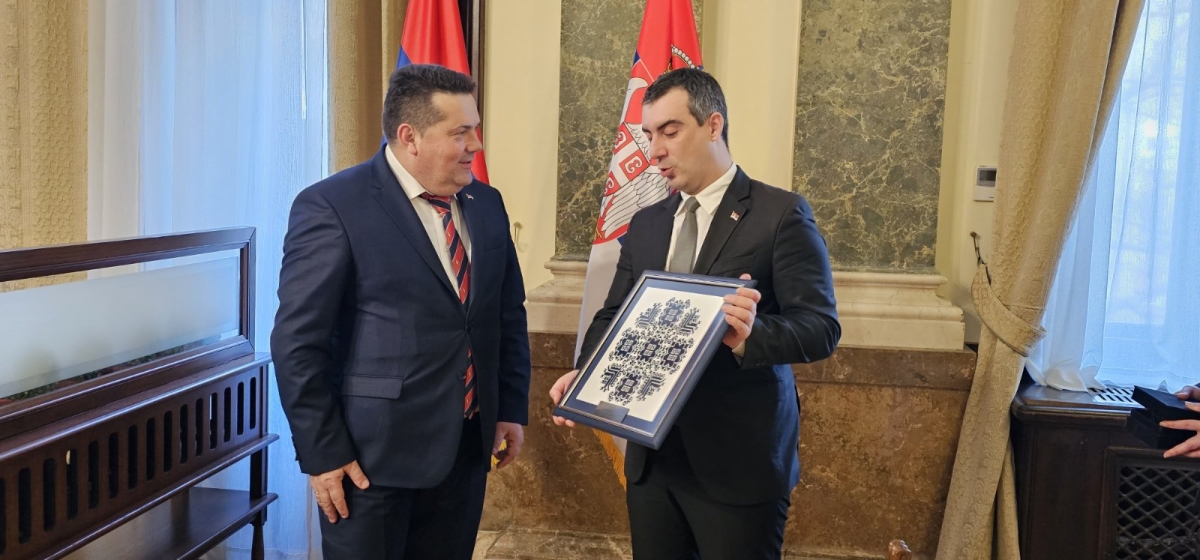Предсједник Стевандић поклонио је предсједнику парламента Србије др Владимиру Орлићу и Посланичкој групи Змијањски вез и том приликом изјавио је да је поносан што ће Змијањски вез красити просторије Народне скупштине Републике Србије.