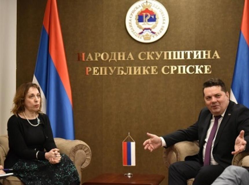 Предсједник Народне скупштине Републике Српске др Ненад Стевандић примио је данас у Бањалуци, у наступну посјету, амбасадора Републике Грчке у Босни и Херцеговини Њ. е. Јоану Ефтимијаду, са којом је разговарао о актуелној политичкој ситуацији у БиХ.
