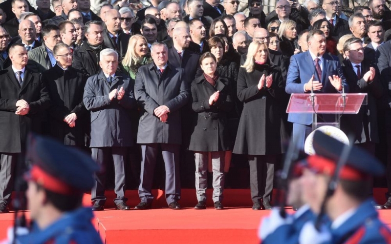 Српски члан Предсједништва БиХ Милорада Додик поручио је на свечаном дефилеу да је Република Српска стварана у миру и одбрањена у рату и да су данас сви Срби поносни на своју Републику.