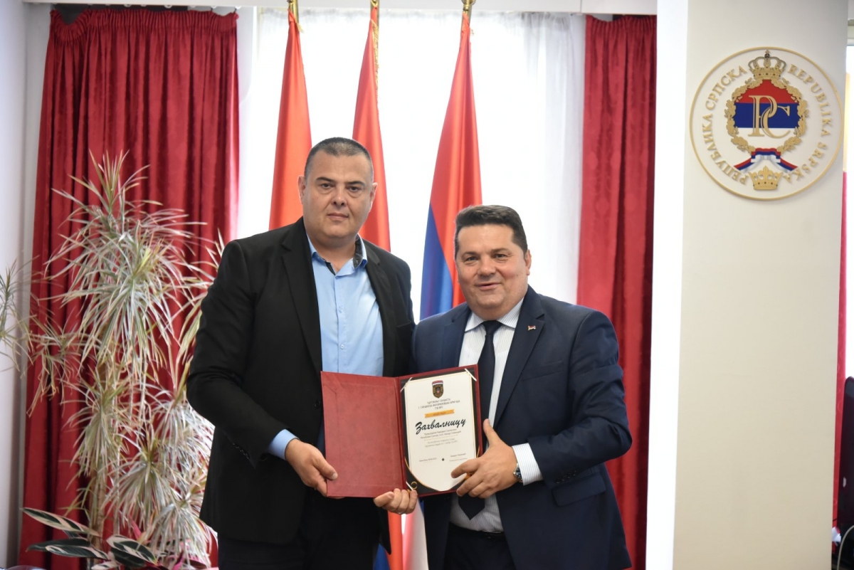 Предсједник удружења Предраг Аћимовић овом приликом уручио је захвалницу предсједнику Стевандићу за несебичну подршку у раду Удружења гардиста 1. гардијске моторизоване бригаде Главног штаба Војске Републике Српске.