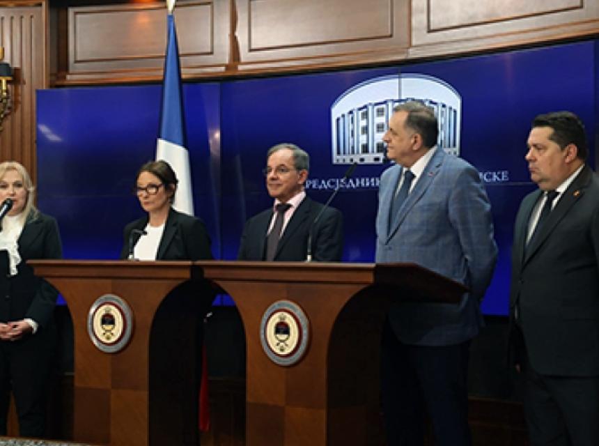 The President of the National Assembly of the Republic of Srpska, Dr. Nenad Stevandic, attended today in Banja Luka the meeting of the President of the Republic of Srpska, Milorad Dodik, with the European Parliamentarians Pascale Piera and Thierry Mariani, at which the current political situation in the Republic of Srpska and Bosnia and Herzegovina was discussed.