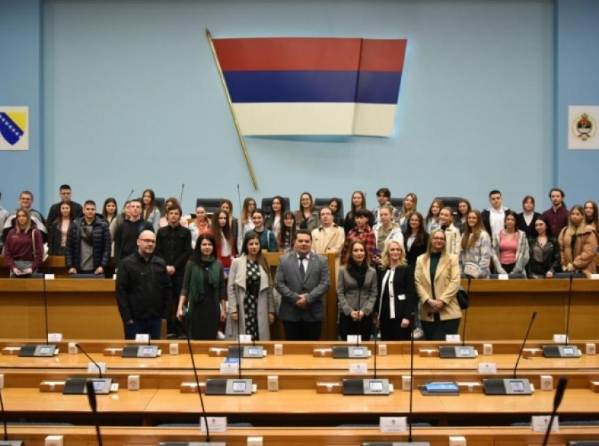 President Stevadnić said that the doors of the institutions of the Republic of Srpska are always open to all those who want to get better acquainted with its work, and that he is especially glad that high school students came to visit today and that he is grateful for showing great interest in the work of the National Assembly.