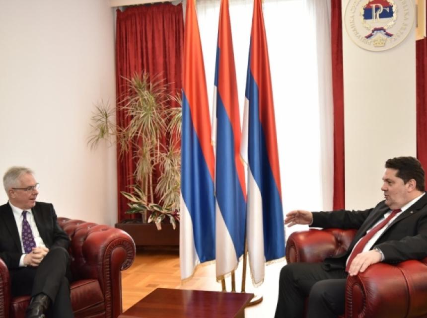 The President of the National Assembly of the Republic of Srpska Dr Nenad Stevandić talked in Banja Luka today with the Ambassador of the United States of America to Bosnia and Herzegovina H. E. Michael J. Murphy on political and economic topics in the Republic of Srpska and Bosnia and Herzegovina.