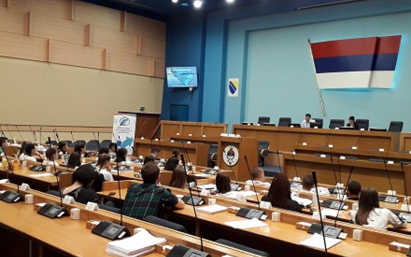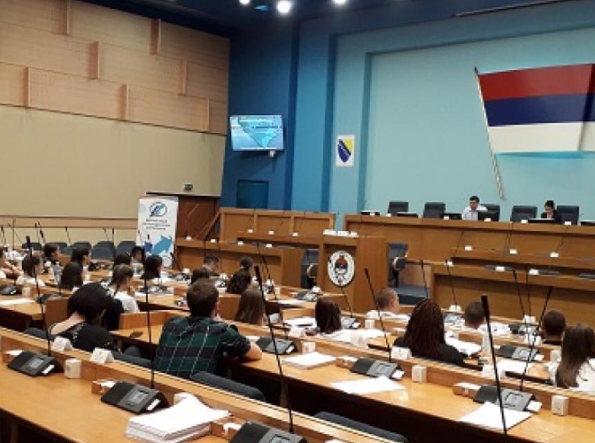 MPs Ranka Peric Romic and Daor Šešić in the context of Days of open doors talked today in the National Assembly of the Republic of Srpska with young people, attendants of the project „Initiate dialogue, active young people for transparent parliaments“ from Trebinje.