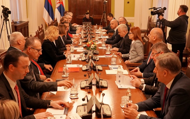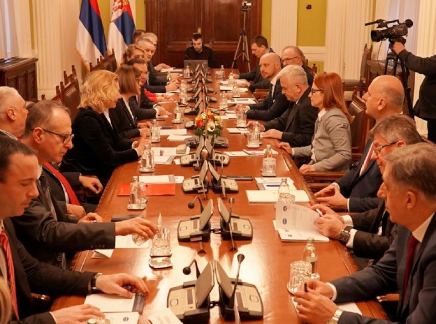 Predsjednik Narodne skupštine Republike Srbije Maja Gojković i predsjednik Narodne skupštine Republike Srpske Nedeljko Čubrilović danas su u Beogradu svečano otvorili prvo zasjedanje Komisije za saradnju parlamenata Srbije i Republike Srpske.
