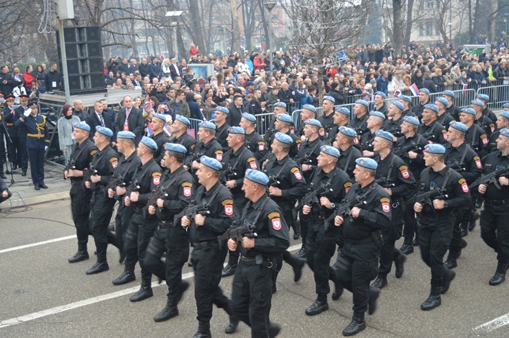 Svečanoj akademiji prethodio je svečani defile 1.800 učesnika, koje je pozdravio veliki broj građana, krenuli su od Trga Republike ka Trgu Krajine, gdje su svečano postrojeni, a dočekao ih je predsjednik Srpske Milorad Dodik, čestitavši im Dan Republike.