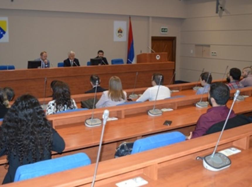 Predsjednik Čubrilović govorio je stažistima o organizaciji, strukturi i funkcionisanju najviše zakonodavne institucije Republike Srpske, Poslovniku o radu i radnim tijelima parlamenta.
