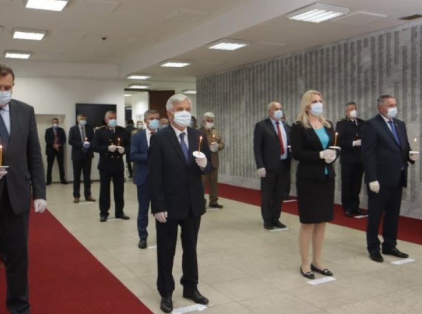 Potom su predsjednik Čubrilović i ostali zvaničnici Republike Srpske položili vijence u spomen-sobi.