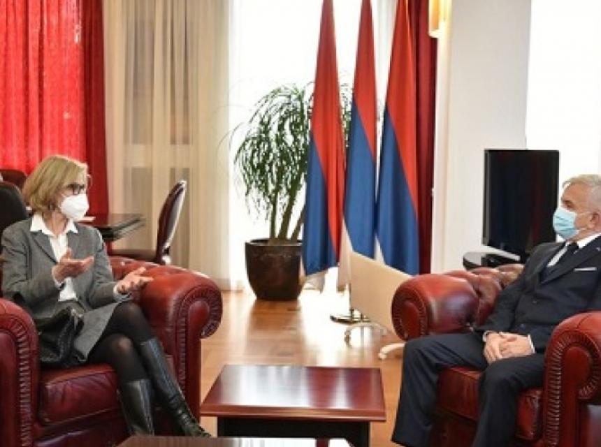Predsjednik Čubilović i ambasadorka Hartman razgovarali su o aktuelnim političkim pitanjima u Republici Srpskoj i BiH, kao i mogućnostima iznalaženja prihvatljivih rješenja za sva tri konstitutivna naroda u BiH.