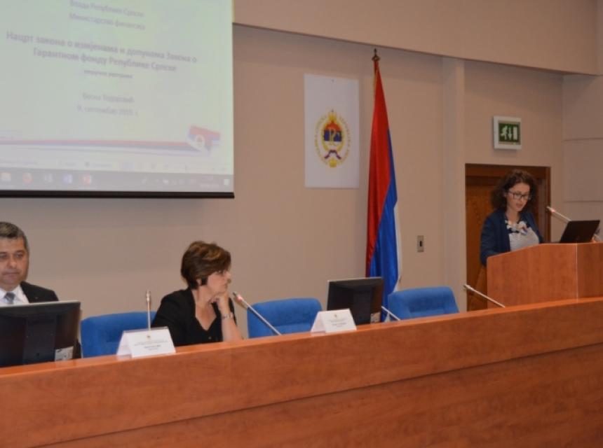 Odbor za finansije i budžet Narodne skupštine Republike Srpske održao je danas u prostorijama parlamenta stručnu raspravu o Nacrtu zakona o izmjenama i dopunama Zakona o Garantom fondu Republike Srpske.