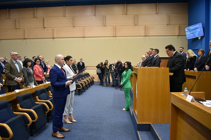 Na početku sjednice svečanu zakletvu su položili narodni poslanici Saša Dragić (SNSD) kojem je mandat dodjeljen zbog prestanka poslaničkog mandata Denisu Šuliću i Milka Savić (SDS) kojoj je mandat dodjeljen zbog prestanka poslaničkog mandata Tamari Evđić.