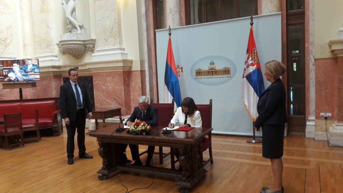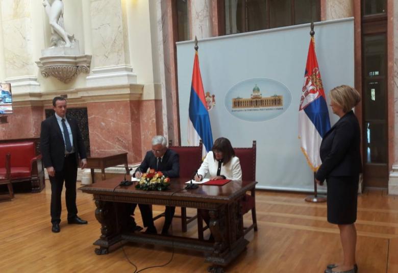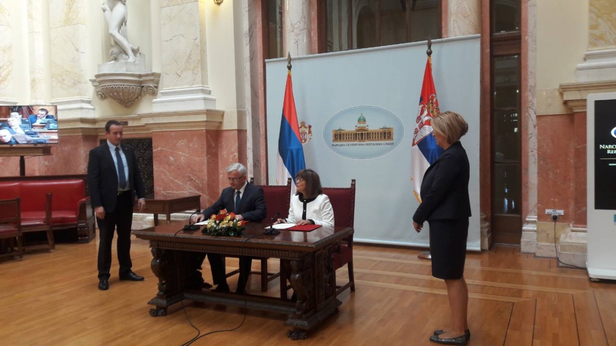 Predsjednik Čubrilović i predsjednica Gojković potpisali Memorandum o obrazovanju Komisije za saradnju parlamenata Narodne skupštine Republike Srbije i Republike Srpske, 26.09.2018.